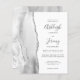Den här elegantens lämnat kant har en modern bröllopsinbjudan med grått och vit vattenfärg som agerat i gräns med faux silver glitter. Anpassadet kombinerar handskrift, tryckplåt och kursivt typsnitt i grått i kol mot vit bakgrund. Den omvända sidan har en matchande grått-, vit- och silver-agatdesign. Obs! Kuvert inkluderas inte automatiskt i dessa budgetinbjudningar, så kom ihåg att välja alternativet "vita kuvert"!