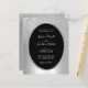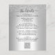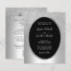 Elegant silverglittrande folie bröllopsinbjudan "All in One" budget... Mot en bakgrund av silverfärgad metallisk folie har vår eleganta "All in One" budget bröllopsinbjudan en unik silverglittrande ombre-overlay med din inbjudantext i en svart oval ram med silverfoliekanter. Baksidan av kortet innehåller alla detaljer som du vanligtvis ser på separata kort i brölloppspaketet. Denna moderna bröllopsinbjudan designades för att vara både elegant och budgetvänlig... för att inte tala om tidsbesparande. På baksidan finns också en QR-kod grafisk mall som du kan ersätta med din egen kod (eller ta bort om du inte planerar att använda en). All exempeltext kan enkelt revideras med din egen information i personaliseringsmallen. OBS: "Budget" kortpapper är inte riktigt detsamma som de traditionella platta inbjudningskort. Våra budgetkort är 4,5 x 5,6 tum tillverkade av halvblankt 110 lb papper jämfört med traditionella "Spara datum" platta kort på 5 x 7 tum i matt papper med 120 lb vikt. Budgetkorten