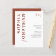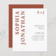 Bröllopspaket med detaljer Modern fet typografi Terrakotta Trendig monogram bröllopsinbjudan... Vår prisvärda "All in One" terrakotta bröllopsinbjudan har fet serif-typografi i kombination med sans serif-text för en enkel och trendig bröllopsinbjudan med monogram. BAKSIDA n på inbjudan innehåller alla DETALJER du vanligtvis ser på separata kort i brölloppspaketet, inklusive tid och plats för mottagningen, boendealternativ, bröllopswebbplats, svarsinformation och gåvoregister. Denna moderna bröllopsinbjudan designades för att vara både trendig och budgetvänlig... för att inte tala om tidsbesparande. All exempeltext kan enkelt revideras med din egen information i personaliseringsmallen. Observera: du har möjlighet att köpa kuvert tillsammans med dina inbjudningar eller att kö
