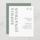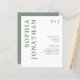 Budgetera alla i ett med detaljerad information Modern Typography Sage Grönt Trendig Monogram bröllopsinbjudning... Vår prisvärda bröllopsinbjudan "Allt-i-ett"-grönt innehåller fet serif-typografi i kombination med sans serif-text för en enkel och trendig-bröllopsinbjudan med monogrammet. Baksidan av inbjudan innehåller alla de uppgifter som du normalt skulle se på separata kort i bröllop-paketet, inklusive mottagningstid och plats, logialternativ, bröllop webbplats, OSA- och registerinformation. Den här moderna bröllopsinbjudan från stil var designad för att vara både trendig- och budgetmedveten.. för att inte nämna tidsbesparing. All exempeltext kan enkelt revideras med egen information om anpassningsmallen. Observera att du har möjlighet att köpa kuvert med dina inbjudningar eller skaffa egna, om du har en föredragen papper produktleverantör.