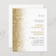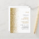 Budgetera allt i en Monogram Sparkly Guld Glitter bröllopsinbjudan... Vår inbjudan till bröllopet "Allt i ett" i guld glitter innehåller en sparsam guld glitter gräns på en skarp vit bakgrund bredvid bruden och brudgummens monogram initialer och inbjudningstext. Kortets baksida innehåller alla detaljer som du normalt ser på separata kort i bröllop-paketet. Den här moderna bröllopsinbjudan i stil var designad för att vara både elegants- och budgetmedveten.. för att inte tala om tidsbesparing. På baksidan finns det också en QR-kodgrafikmall som du kan ersätta med din egen kod (eller ta bort grafiken och tillhörande text om du inte planerar att använda använda ett). All exempeltext kan enkelt revideras med egen information om anpassningsmallen.