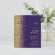 Budgetera allt i One Guld Glitter Monogram Lila Wedding bjudande med detaljer på baksidan... Vårt prisvärda "Allt i ett"-glitter på bröllopsinbjudan till lila har ett gräns i guld glitter bredvid din inbjudningstext och brud- och groommonogram initialer. BACK för inbjudan innehåller alla de DETAILS som du normalt skulle se på separata kort i bröllop-paketet, inklusive mottagningstid och plats, logialternativ, bröllop webbplats, OSA- och presentregisterinformation. Den här moderna bröllopsinbjudan från stil var designad för att vara både elegant- och budgetmedveten.. för att inte nämna tidsbesparing. All exempeltext kan enkelt revideras med egen information om anpassningsmallen.