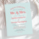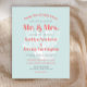 Den här inbjudan till badbröllop på stranden innehåller ord "Sandy Toes & Salty Kisses", "Mr. Och Mrs.." och namn i fet rosa i korall över en vintage, en vit illustration av havskoral på en subtil akumblåbakgrund.