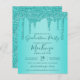 Aqua Teal Gnistra Glitter Drips Studentfest Inbjudan med ditt monogram och namn med våra trendig faux teal glitter drops på en glamorös akvatal (turkos) bakgrund. Du är lyx, så visa det! Perfekt för din glitter-estetik! **Vårt BUDGETpapper är mindre och mer känsligt, men ändå vackert!* Om du behöver hjälp eller matchande artiklar kan du kontakta oss på cedarandstring@gmail.com.