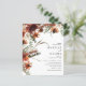 Den här naturliga bröllopsinbjudningen för snyggt har vattenfärgen terracotta och mörk röda rusblommor, torra löv och kvistar. Det är en inbjudan till perfekt för höststrussen och boho bröllop. Ny höstsamling. Modern trendutformning.