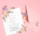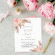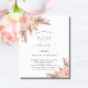 För en modern boho stil babydusch. En vit snyggt bakgrund. Dekoreras med ro guld och rosa blommigt, rosor och pampasgräs. Anpassa och lägg till information om namn och party.