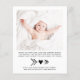 Ett budgetvänligt flicka eller pojke tackar er för ert födelsetillkännagivande. Framsidan innehåller ditt baby-foto, namn, ankomstdatum och födelsestatus och "tack" skrivet i ett contemporary med ett hjärta som går med de två ord. På motsatt sida lägger du till ytterligare ett foto och anpassar ett tackmeddelande och förälder och syskon namn under en koordinerande söt pil med ett hjärta.