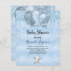 För en babydusch, fira en pojke. En blå, fingerad, metallisk tittar bakgrund. Dekorerad med blå faux glitter-droppar, målardroppstift, ballonger och en söt liten liten elefantpojke från baby. Anpassa och lägga till uppgifter om namn i mamma till namn och party. Namn och texten: Baby Shower är skrivet med ett handskript i stil