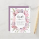 Budget Boho Dammig Rosa och Lila Blommig Botanisk Grönska Vattenfärg Baby Shower Vår eller Sommar Inbjudan - inkluderar vacker och elegant skript typografi med moderna botaniska blommor och grönska för den speciella blivande mamman firande för en ny baby pojke, baby flicka eller könsneutralt tillkännagivande.
