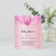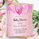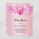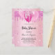 För en babydusch, fira en flicka. En rosa Faux metallic tittar bakgrund. Dekorerad med faux glitter och ballonger. Anpassa och lägga till uppgifter om namn i mamma till namn och party. Namn och texten: Baby Shower är skrivet med ett handskript i stil
