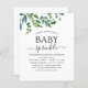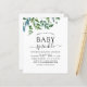 Budgeterad Blommigt Grey Botanical Watercolor Vår Baby Sprinkle Shower-inbjudan på grönt och vit bakgrund - innehåller vacker och elegant skripttypografi med modernt botaniskt löv och grön för att speciella Mor ska vara firande.