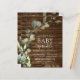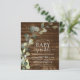 Budget Eukalyptus Grönska Sukkulent Botanisk Vattenfärg Vår Könsneutral Baby Boy eller Baby Girl Baby Sprinkle Shower Inbjudningar på rustik trä landsbygd utomhus bakgrund - inkluderar vacker och elegant skript typografi med moderna botaniska blad och grönska för den speciella firandet av den blivande mamman.