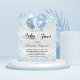 En faux silver metallisk tittar bakgrund. Dekorerad med blåfaux glitter stoft och ballonger. Anpassa och lägg till information om namn, ålder och party. Namn är skrivet med ett handskript i stil