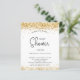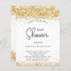 En vit snyggt bakgrund. Dekorerad med faux-damm från guld glitter. Anpassa och lägg till information om namn och party. Namn är skrivet med ett handskript i stil