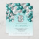 Den här festliga flickans 8:e födelsedagsinbjudan innehåller en teal- och silver-ballonggarland över en silver-faux-folie med nummer "8" och teal ribbon och konetti. Anpassa texten med ditt barns namn och födelsedag i handskriftsskript för elegant och övriga party-detaljer i grått sans serif-teckensnitt på blek teal ombre-bakgrund.