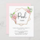 En bassäng-partyinbjudan med rosa flamingos. Anpassa och lägg till information om namn och party. Perfekt för sommaren, bassäng eller den 4 juli i party.