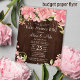Lantlig country-stil budgetvänlig inbjudan till babyfest för både killar och tjejer med barbecue i trädgården på mörkbrunt ladanträ med stora rosa akvarell-peonrosor och strängar av gnistrande ljus. Inbjudan passar för utomhusfirande i trädgården med rustic country BBQ för baby shower-partyn för flickor. Vänligen läs detta innan köp! Detta är ett budgetvänligt bröllopskort tryckt på ett pappersark (varje ark har ett kort). För bästa förhållande mellan pris och kvalitet är vårt råd att välja Semi-Gloss-pappertyp (det är tjockt nog att användas för brevpapper). Om du behöver kuvert, välj KUVERTERALTERNATIV. Dubbelkontrollera all information och stavning av din text eftersom du kommer att få exakt vad du ser - ingen annan kommer att kontrollera någonting innan tryckning. Detta kort är designat för storlek 4,5" x 5,6". Om du väljer en annan storlek på kortet och texten hamnar utanför sidan