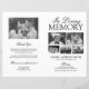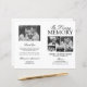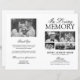 Elegant budget minnesprogram med en klassisk vit bakgrund som kan ändras till valfri färg, 5 bilder av din avlidne, detaljer om begravningen, en dödsruna, ordning för ceremonin, detaljer om vaken, ytterligare ett foto på baksidan och ett personligt tackkort. OBS: Dessa levereras som ett plant papper av hög kvalitet, du måste vika dem själv.