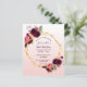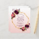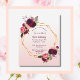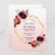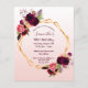 På framsidan: En inbjudan till en 50:e (eller någon annan ålder) födelsedagsfest. Elegant och trendig ro guld, vit övertoningsbakgrund med faux guld geometric ram. Dekorerad med mörkens lila och burgundblommor, ro och boho stil fjädrar. Mallar för uppgifter om namn och party. Namn är skrivet med ett handskript stil, lila färgad brev. Bakåt: ro guld, vit övertoningsbakgrund.