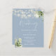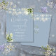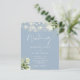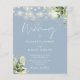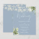 Denna eleganta dammiga blå bröllopsinbjudan med fina strängar av ljus och blomstergrönska kan anpassas med din information i chic typografi med dina monograminitialer på baksidan. Designad av Thisisnotme©