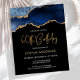 Denna trendiga inbjudan till 60-årsfirande har en akvarellbild av en agatgeod i olika nyanser av blått med falska guldhöjdpunkter. Orden "60-årsfirande" visas i falskt guldglitter i dekorativ modern handskriven font. Anpassa den med namnet på den hedrade personen i guldfärgad text och detaljerna i vitt. Samma blå agatbild visas på baksidan.