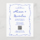 Budget Modernt Whimsical Blå Handritad & Handskriven Font Monogram QR-kod Bröllopsinbjudan.