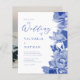 Budget Blå Vit Blommig Foto Bröllopsinbjudan