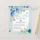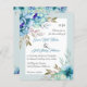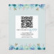 BUDGET-blåfärgade blommor blommigt mint grönt bröllop-inbjudan med QR-kod för OSA. Den visar blombuketter i blå och mintfärgade gröntar på hörnen medan texten placeras i ett vitt ram med gräns. På baksidan finns blommigt- och bergsområden på övre delen av och grund samt QR-koden för gäster som ska söka och svara.