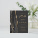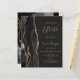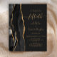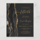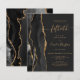 The left-hand edge of this elegant modern 50th anniversary party invitation features a black watercolor agate border trimmed with faux gold glitter. The customizable text combines gold-colored handwriting, copperplate and italic fonts on an off-black background. The reverse side features a matching black and gold agate design.