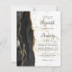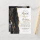 Den här elegantens lämnat kant har en modern bröllopsinbjudan med en svart vattenfärg som agerade i gräns som trimmas med faux guld glitter. I anpassadet kombineras svartvitt med svart teckentabell och kursivt typsnitt på vit och guld marmorbakgrund. Den omvända sidan har en matchande svartvit och guld agate-design.