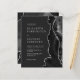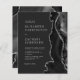 Högerna kant i denna elegant innehåller en modern bröllopsinbjudan en svart vattenfärgad agat gräns som trimmas med faux silver glitter. Anpassadet kombinerar silver grått serif, copperplate och italic typsnitt på en skiffersvart bakgrund. Den omvända sidan har en matchande svartvit och silver agate-design.