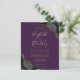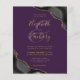 En svartfärgad färgagatdesign som trimmas med faux guld glitter visas i två hörn av eleganten. Anpassa den med parets namn i handskriftsskript för guld färgad över ett stort lila ampersand. Lägg till uppgifterna om bröllop i guld-färgad och kursivt typsnitt i lila. Den omvända sidan har en matchande svartvit och guld agate-design. Obs! Kuvert inkluderas inte automatiskt i dessa budgetinbjudningar, så kom ihåg att välja alternativet "vita kuvert"!