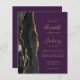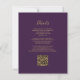 Den här elegantens lämnat kant har en modern bröllopsinbjudan med en svart vattenfärg som agerade i gräns som trimmas med faux guld glitter. Anpassadet kombinerar handskrift, rityta och kursivt typsnitt på guld-färgad i djup lila. På baksidan finns utrymme för bröllop-information på en solid lila-bakgrund, tillsammans med en QR-kodgäst som kan söka på webbplatsen och OSAN, vilket sparar kostnaderna för utskrift och utskick av separat OSA kort.