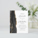 Den här elegantens lämnat kant har en modern bröllopsinbjudan med en svart vattenfärg som agerade i gräns som trimmas med faux guld glitter. Anpassadet kombinerar grått-skriptet för kol och sans serif typsnitt på vit bakgrund. Den omvända sidan ger plats för bröllop-information på en solid vit bakgrund, tillsammans med en QR-kodgäst som kan söka på webbplatsen och OSAN, vilket sparar kostnaderna för utskrift och utskick av separat OSA kort.
