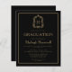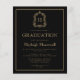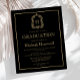 Den här klassiska inbjudan till studentfest för elegant innehåller en guld-färgad-monogramsstart i ett öppet serif-teckensnitt som omges av en konturteckning på en svart vapensköld. Anpassa texten till uppgifterna om student namn och party. Kortets baksida är starkt svart. Perfekt för en högskola, högskola eller universiteten student.