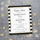 Med en klassisk svart och vit rand-bakgrund har den här elegant bröllop-par-duschinbjudan en faux guld-foil gräns som ger dig information om par-duschdetaljer i modern typografi av chic. Designad av Thisisnotme©