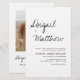 Budgetera Anpassa den här Boho Modern Simple Elegant White and Black Snyggt-inbjudan med ditt meddelande, din elegant-foto och din information. Denna minimalistiska inbjudan omfattar handskrivet manustypografi för snyggt för att speciella Bröllop ska kunna vara firande.