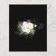 En elegant arrangemang om vit ros är belägen i mörk grönt löv och i guld. Vit text står på en svart bakgrund. Den avlidnes namn är skriven i ett traditionellt manus. Hela texten kan enkelt redigeras för att skapa en personlig hågkomst.