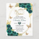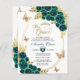 Blommig Smaragd Guld Tiara Fjäril Mis Quinceañera Inbjudan