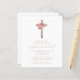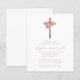 Budget Blommig Rosa Guld Kors Flicka Dop Inbjudan