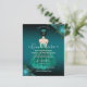Denna eleganta budget Quinceañera-inbjudan visar en flicka i en teal klänning med teal och guld blommiga accenter. Baksidan har teal och guld ros mönster. Lätt att anpassa genom att klicka på "Personifiera".