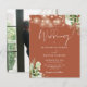 Denna eleganta budget terrakotta bröllopsinbjudan, med fina strängljus och blomstergrönska, kan anpassas med din information i chic typografi med ditt speciella foto på baksidan. Designad av Thisisnotme©