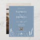 Blommigt Dusty Blue Monogram Gräns QR Fotobröllopsinbjudan