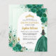 Blommigt Emerald Grönt Princess Gown Dress Glitter Gnistra Tiara Krona Butterfly 15:e födelsedagsinbjudan Quinceanera