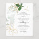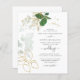 Budgeterat botaniskt grönt bröllopsinbjudningskort för guld löv med en modern beröring som du lätt kan skicka ut till dina vänner och familj för din speciella dag.