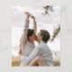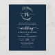 Blått monogram fotobröllopsinbjudan till blommigtens andningsflotta