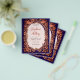Perfekt för ett fall- eller vinterbröllop med dess mörk blått och varma kopparskuggor. I gräns finns insnitterade vilda blommor och två små fåglar. Detta budgetalternativ är tryckt på ett pappert lakan. Nyskapande, unika teckningar och design av Tuzi Williams.