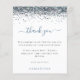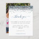 Blue Glitter Photo Hen Party Tack. Ett budgetmässigt prist mindre än 4,5 x 5,6 tum alternativ. Finns i ett SEMI-GLOSS 110 lb-kort LAGRAR, vilket är standardalternativet (tjockare för inbjudningar), ELLER SATIN AVSLUTAR 80 lb PAPPER LAGRAR (perfekt för bilagor). Kuvert är ett extra som tillval och är något större än det storleka kortet. En blå faux glitter gräns ligger överst och Tack är i ett handskript i stil. Anpassa texten till dina egna detaljer. På baksidan byter du favoritfoto från hönsen av porträtt orientering.