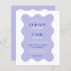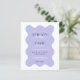 Den vackra bröllopsinbjudan är inramad av en känslig vågslinga gräns. Den har en lugn palett som inspirerats av lavender fält, med lugnande nyanser av lavender kompletterade med mjuka gröntar och ärliga toner. Den lekfulla men sofistikerade typsnitt-dansen över sidan, blandningen av stollig med elegans och det markerade ord som markerats med vibrerande blått tillför en trevlig bild av färg. Det är mer än bara en inbjudan, det är en inledning till ett firande fyllt av charm och glädje, perfekt lämpat för par som vill ha en blandning av roligt och sofistikering i en design som mjukt talar om natur och kärlek.