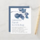 Blåmodern Foliage tjugoförsta Inbjudan. Ett budgetvänligt SMALLER-alternativ på 4,5 x 5,6 tum. Finns på ett SEMI GLOSS 110 lb-kort LAGRAR eller ett SATIN AVSLUTAR 80 lb TINNER PAPPRA LAGRAR. Kuvert är ett valfritt extra. Informellt stil. Modern stora vattenfärgsdjup blå löv dekorerar överkanten och överskriften är stor nedanför i gemener av snyggt med detaljerna vid grund. Anpassa texten till dina egna detaljer.